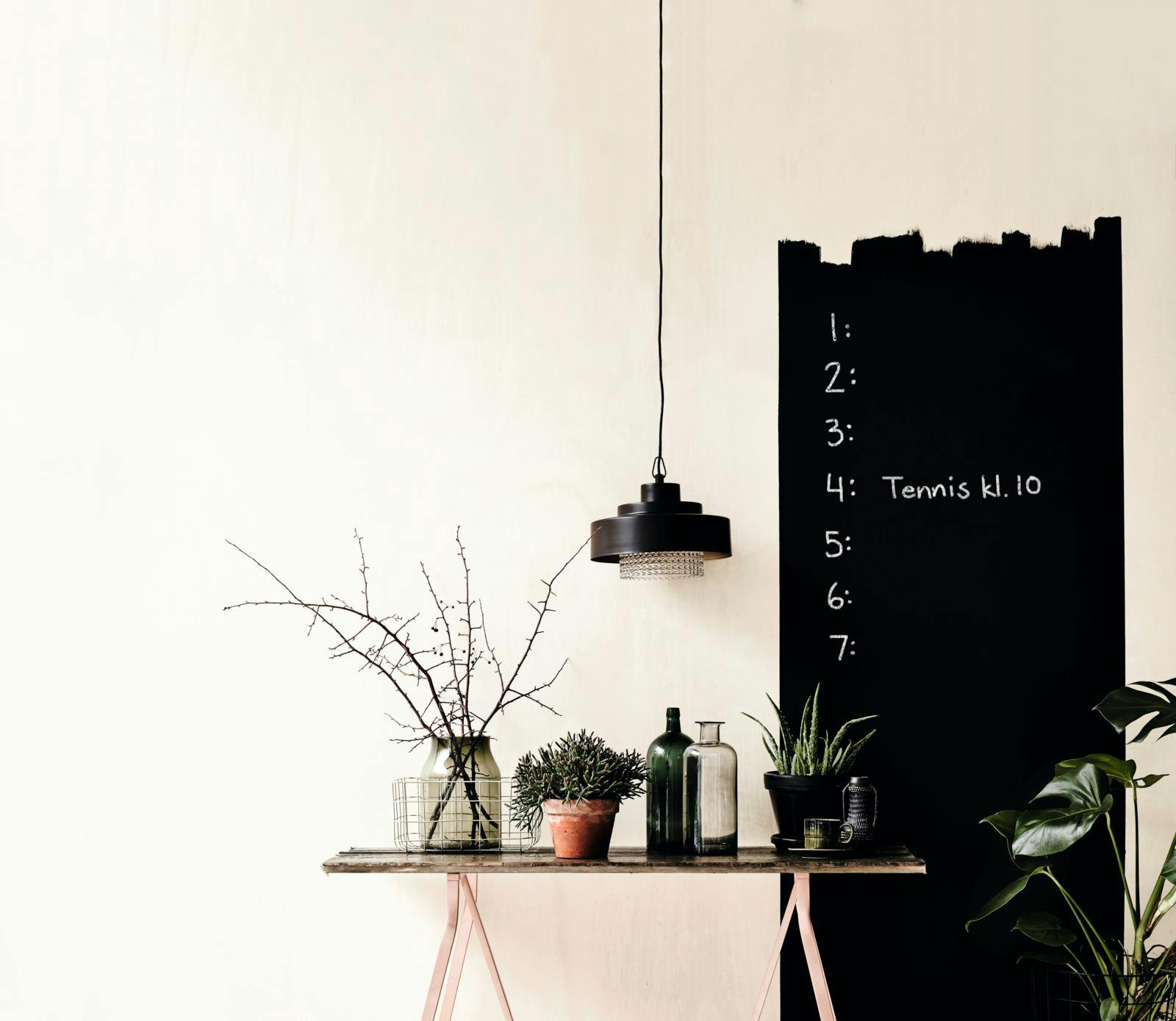 Du kan male din egen kalender med tavlelak og skrive alle familiens aftaler og gøremål ind med kridt. Når en ny uge eller måned begynder, er det tid til at viske tavlen ren og starte på en frisk.