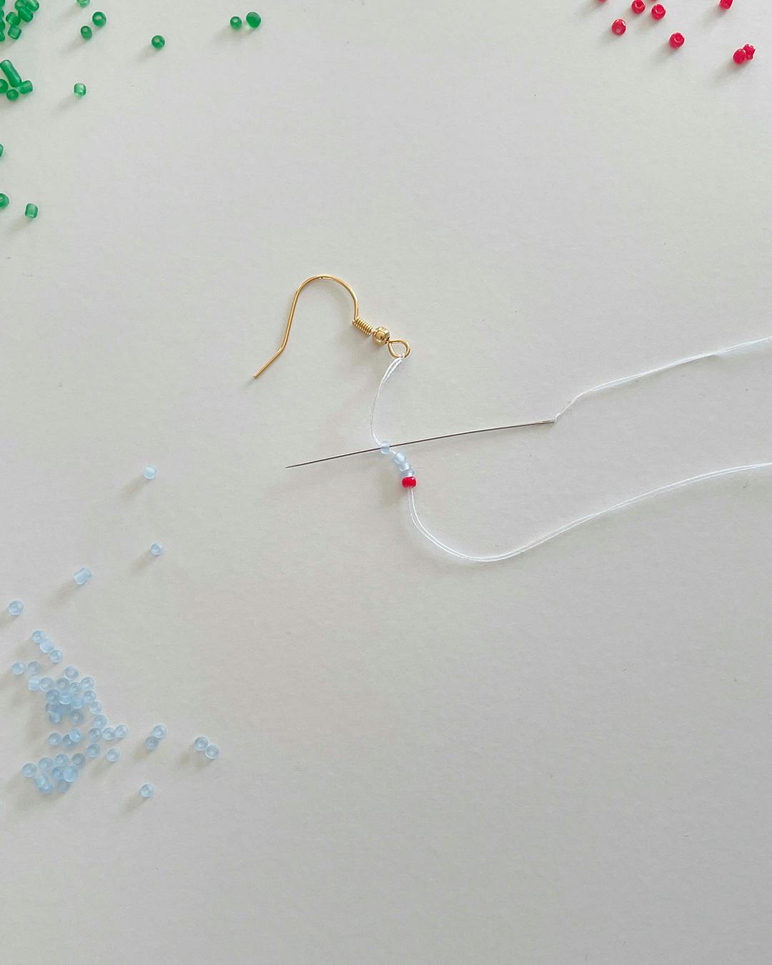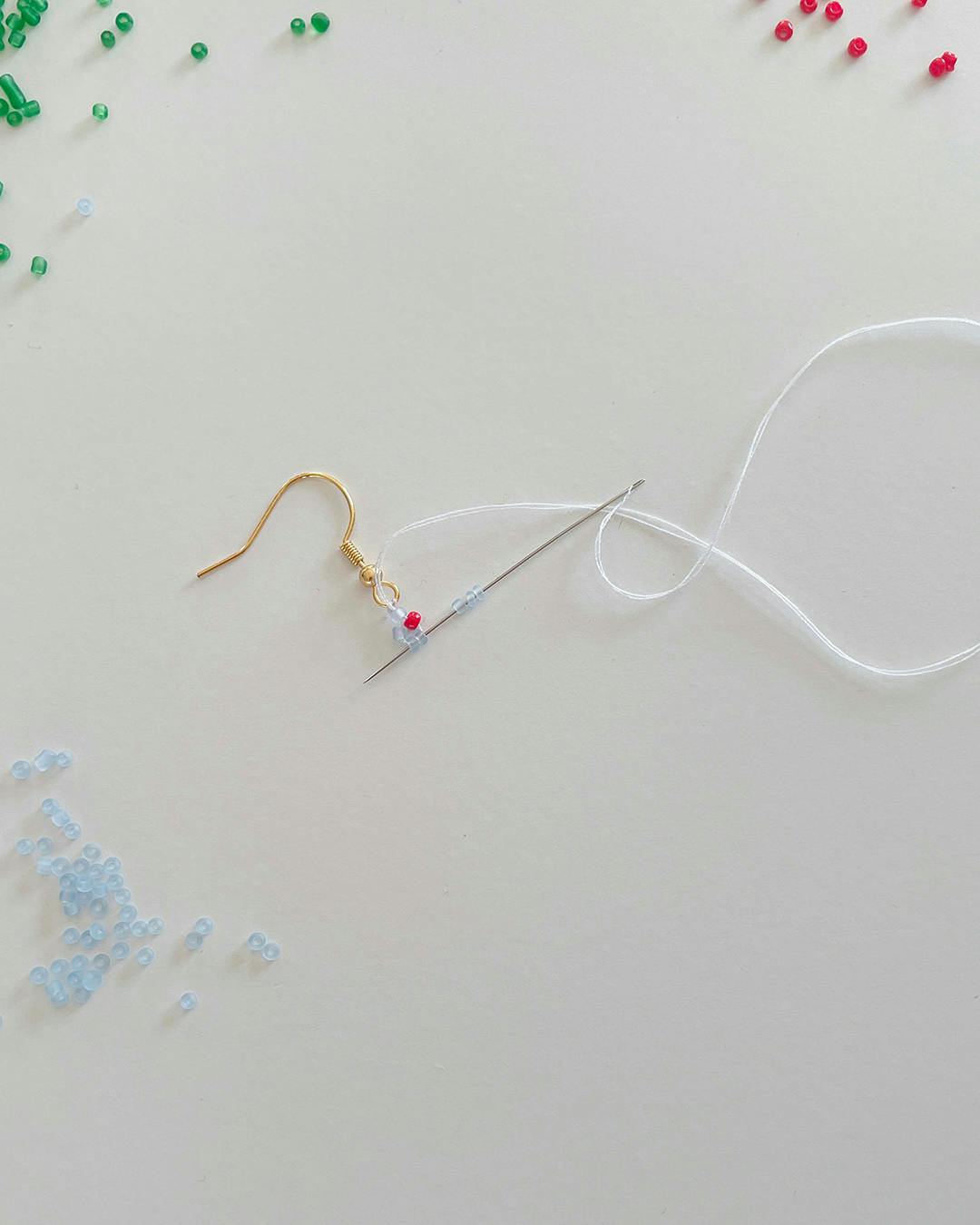 Trin 4: Påfør nu ørestikken på tråden. Hæft et par gange, så den sidder godt fast.