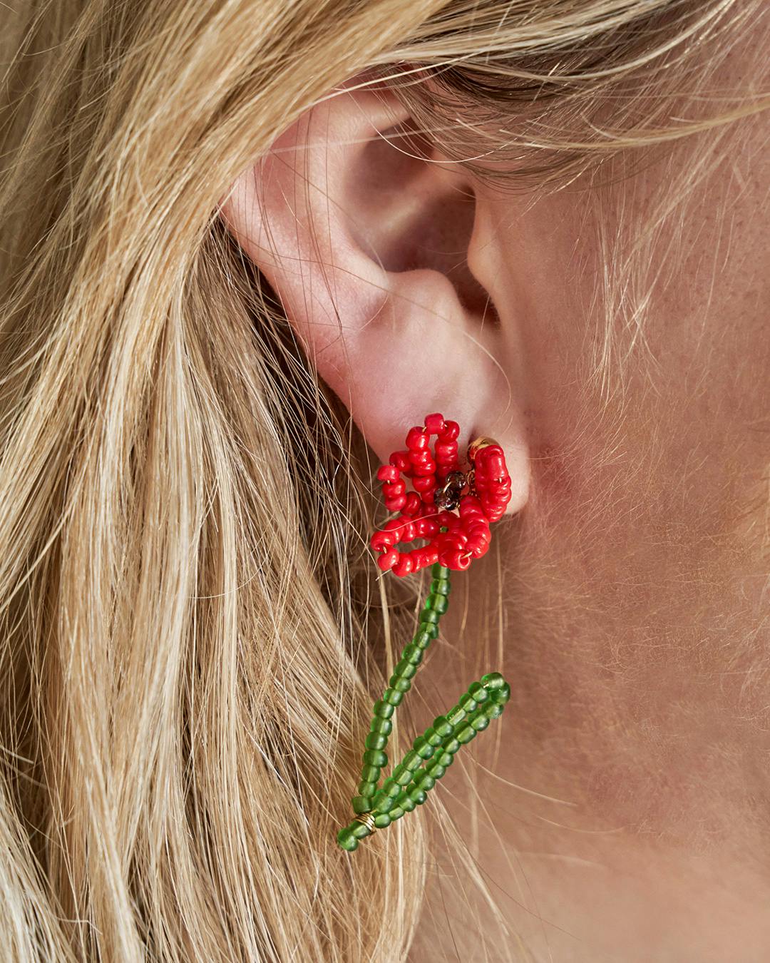 Har du set de mange farvestrålende perleøreringe med blomster og frugter? Du kan sagtens lave dem selv - fat bare tråd og perler, så er du i gang!