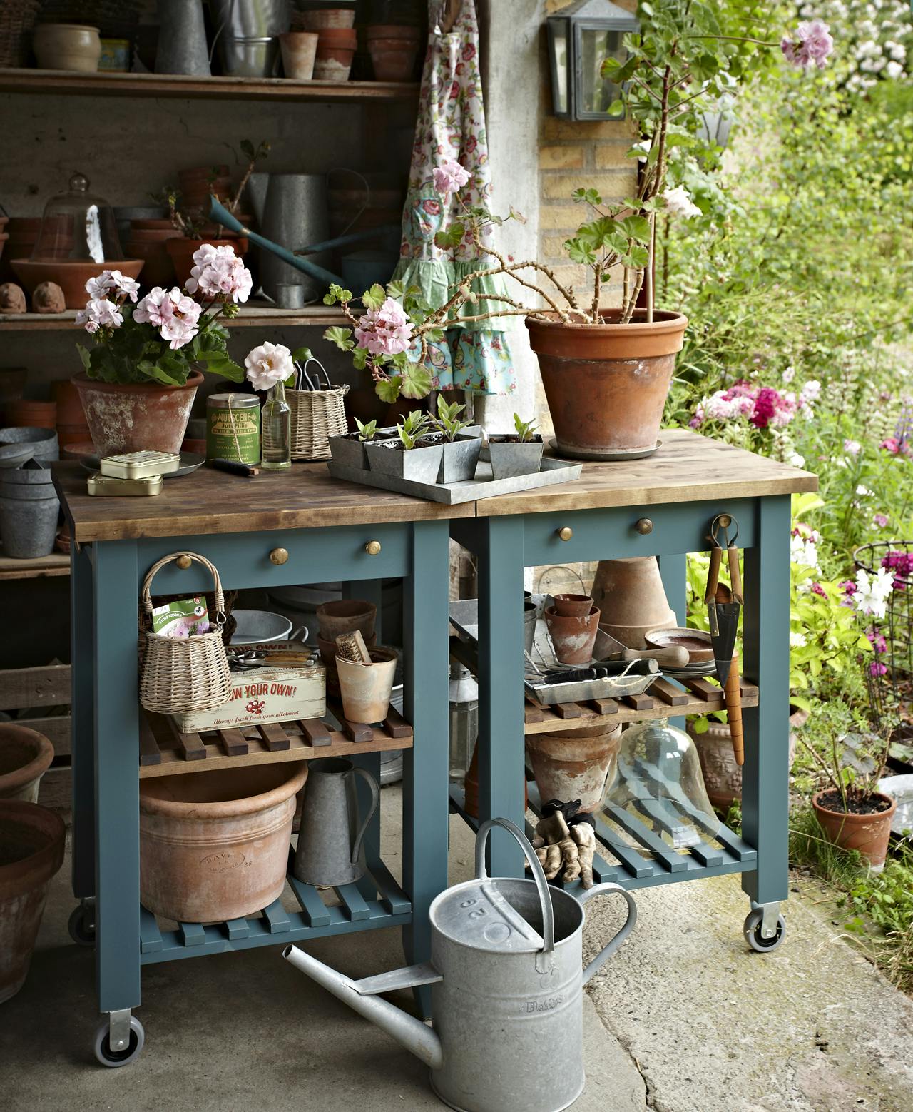 Et plantebord skal være solidt, så det kan tåle vægten af tunge potter og jord, og der skal være masser af opbevaringsplads. Har du et gammelt rullebord, kan det nemt forvandles til det smukkeste plantebord!