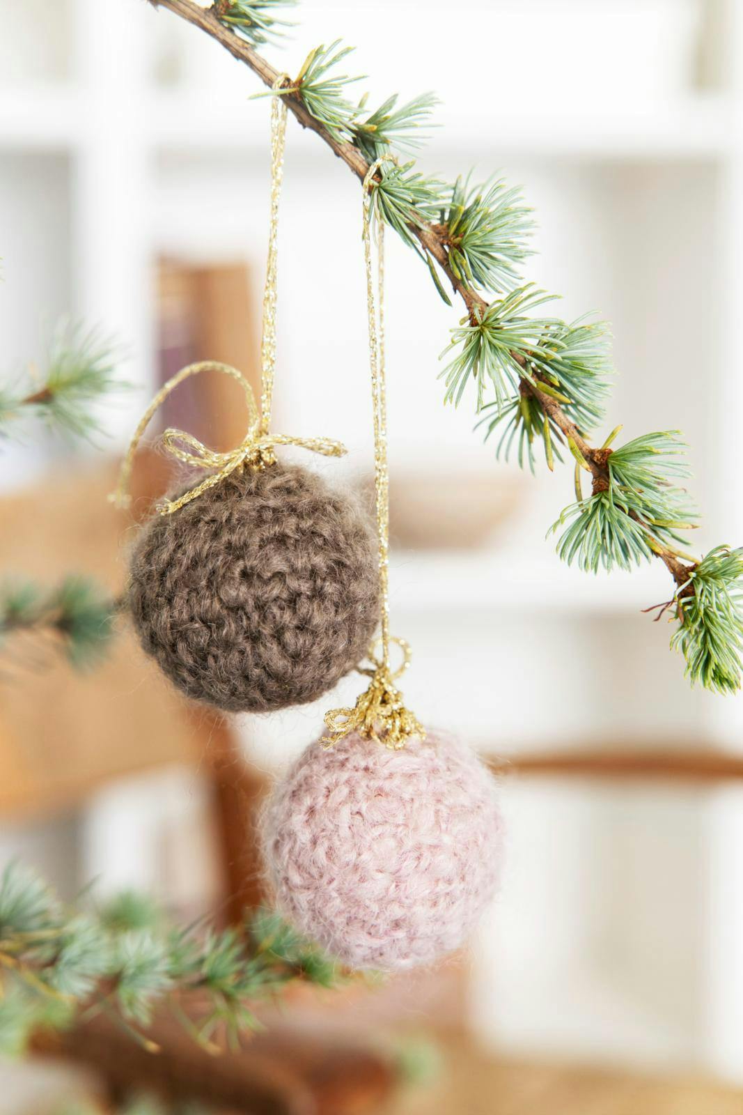 Vi spår, at vores bud på årets julekugler bliver et hit både at kreere og at pynte træet med. Så fat hæklenålen, hiv et par timer ud af julekalenderen, og hyg løs. De søde, hæklede julekugler skaber et hyggeligt look, og de ses bedst, når de hænger på spinkle grene i en vase eller på et træ som på billedet nederst i artiklen. God fornøjelse!