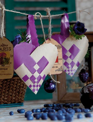 Inden du går i gang med at flette julehjerter med figurer, er det en god idé at øve sig på et stykke bagepapir først. Det kræver nemlig lidt øvelse at flette julehjerter med mange strimler. Det er godt at bruge papir, der ikke er for kraftigt, da det kan være svært at flette specielt de nederste strimler uden at krølle dem for meget, hvis papiret er tykt.
