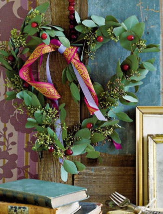 Grøn hjertekrans af eukalyptus med glimt af tranebær
