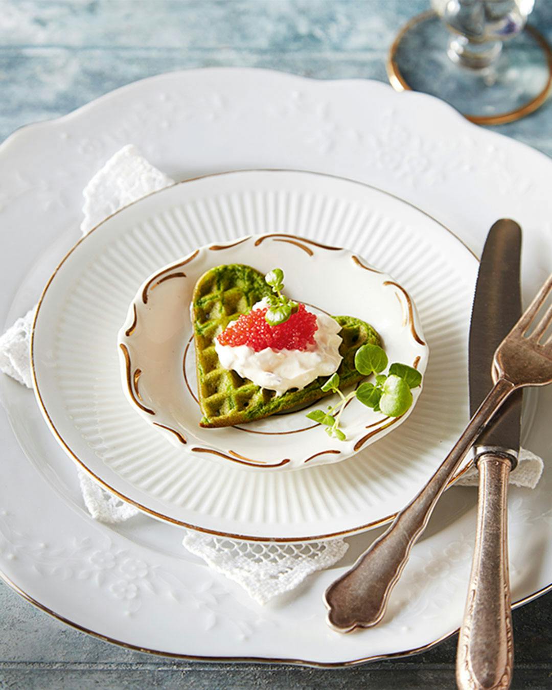 Kast dig over denne luksuriøse spise, og nyd den som en snack eller forret på nytårsbordet. Stenbiderrognen smager skønt ovenpå sprøde minivafler og drys af brøndkarse. Få opskriften her!