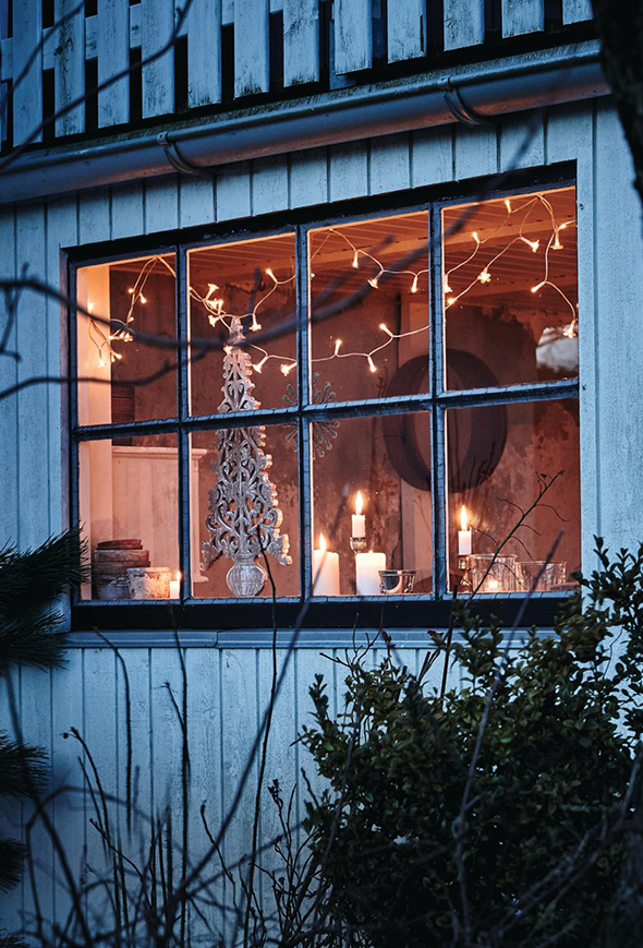 Gør det ekstra uderum klar til julehygge ved at skrubbe plantebordet for sommerens havesysler og pynte det med levende lys og lyskæder. Betræk havestolene med skind og tæpper, så det er til at holde varmen derude en kold vinteraften.