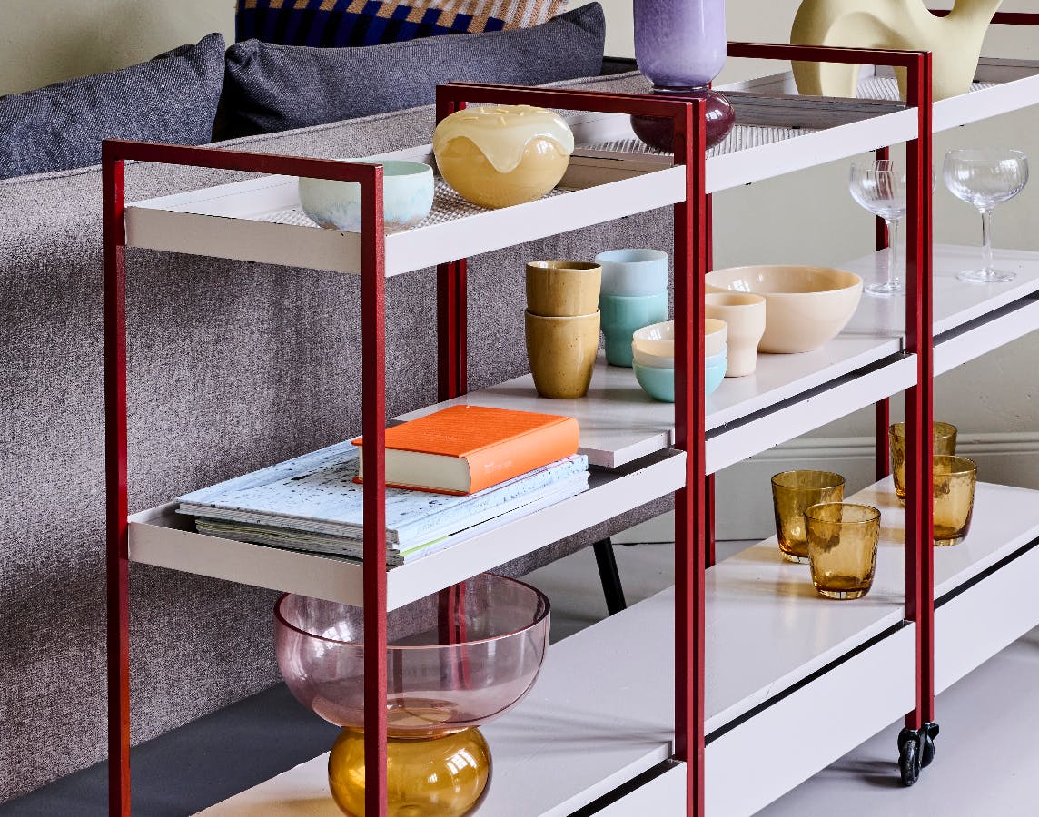 Er du løbet tør for opbevaringsplads, kan det virke som en umulig opgave at få plads til mere eller skulle starte et stort projekt med indbyggede reoler. Det behøver heldigvis ikke være så svært. Med et par billige rulleborde fra f.eks. IKEA kan du nemt skabe smart og praktisk opbevaring, der kan passe ind i ethvert hjem. Metalstellet er malet i farven S4550-y90r, og hylderne er malet i Lavender Touch fra Jotun.