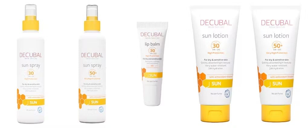 Er du også træt af at have én solcreme til børnene, én til dig selv, én til ansigtet og en ekstra “bare i tilfælde af”? Med Decubals Sun Care serie er den tid ovre. Serien består af parfumefri, allergicertificerede* produkter (to lotions, to sprays og et læbeprodukt), som både børn, mænd og mødre med almindelig og sart hud kan bruge uden problemer.