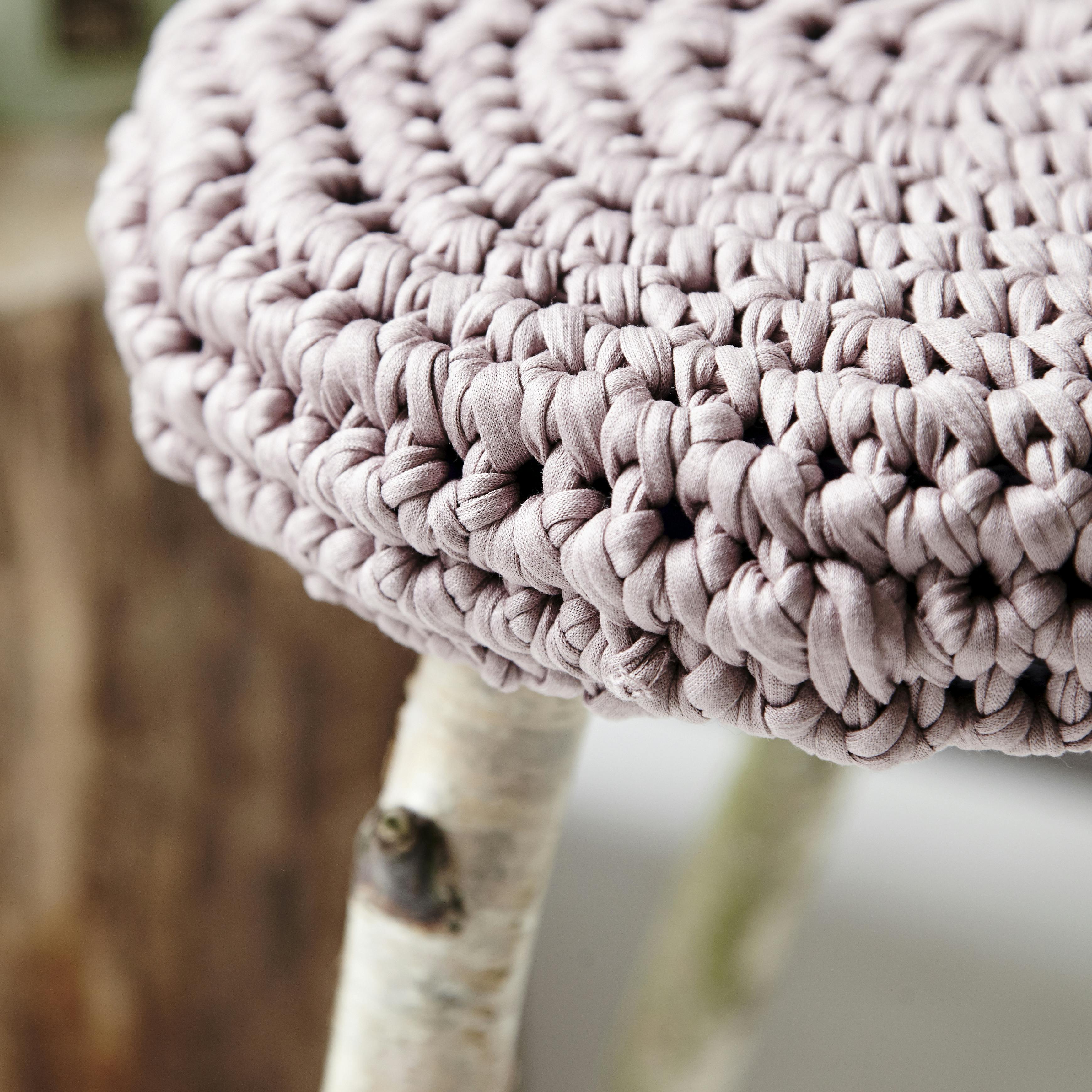Hækleopskriften her er sjov og nyttig: En gammel, slidt skammel kan forvandles til en trendy, lille sag med et lækkert hæklet cover. Grib fat i hæklenålen!