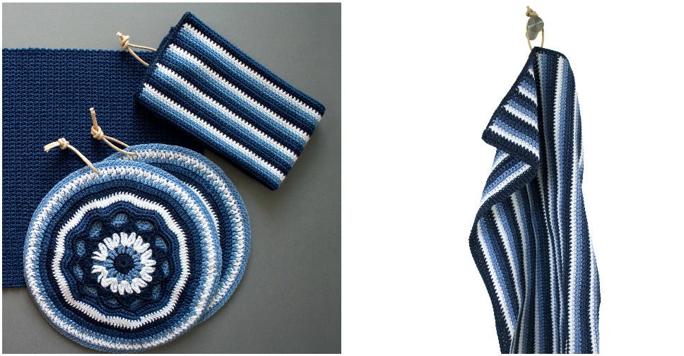 Hjemmelavede hæklerier er både hyggelige at kreere og smadderfine i boligen. Er du ferm til at hækle, vil du elske det her køkkenhåndklæde i fine blå nuancer!