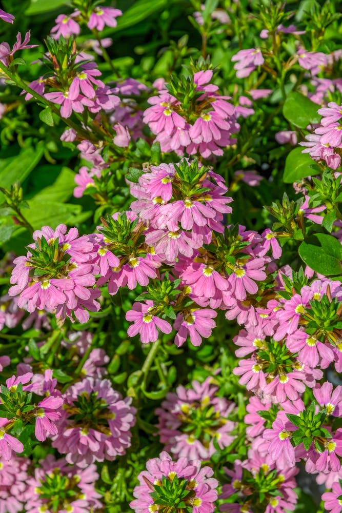 Fjerblomster findes i 3 farver; hvid, blå og rosa. Dens fyldige blanding af blomsterskud og lange ranker giver en dejlig ro. Blomsterne er vifteformede og sidder i toppen af skuddene. Afhængigt af hvor godt du passer på den, kan skuddene blive 25-40 cm lange. Du kan læse mere om, hvordan blomsten skal passes længere nede i artiklen.