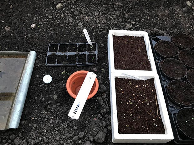 Stauder, der blev sået i vinter, har nu fået små spirer. De er sat i mistbænken, hvor de står koldt, men beskyttet. Og det er spændende at følge. Omkring 50 purpursolhat er netop spiret frem, og jeg håber at kunne plante dem ud til efteråret.