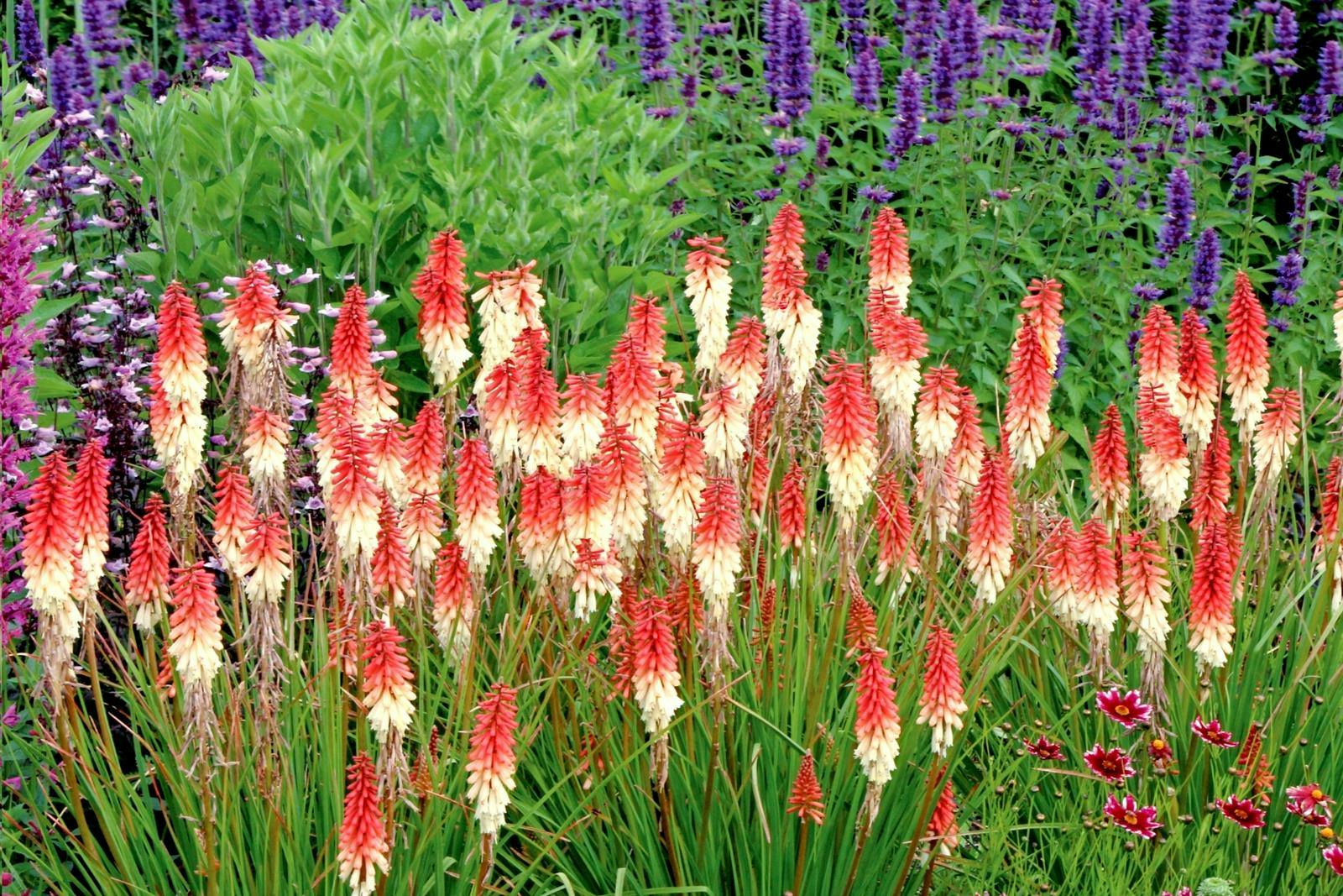 ‘Red Hot Popsicle’ med lysende røde, 40 cm lange blomsterspir. Blomstrer juni-september.