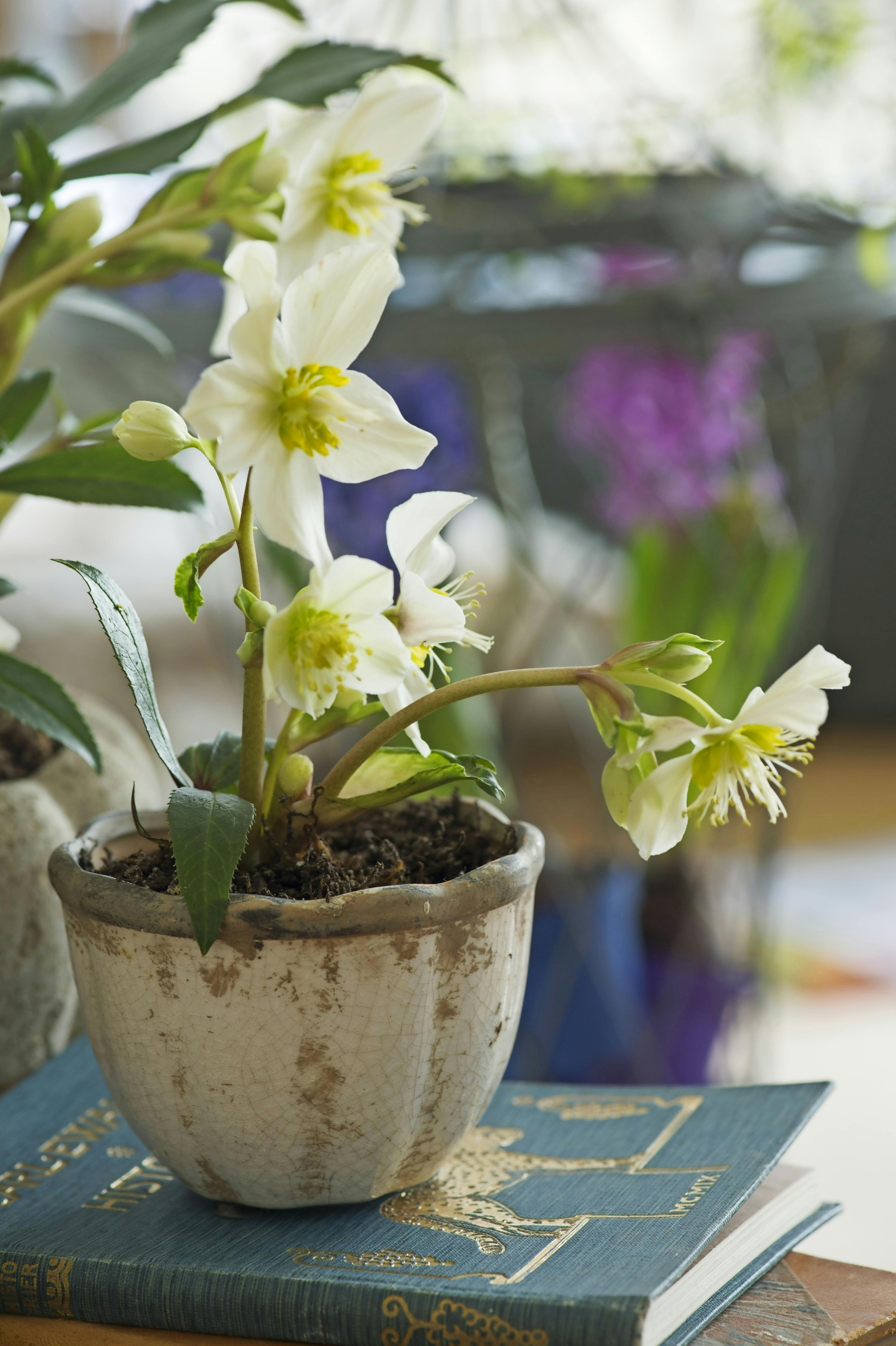 Den klassiske julerose, der måske har stået indendørs i en dekorativ potte, vil også gerne udenfor så tidligt som muligt. Den tåler en del minusgrader, men skal gerne beskyttes med lidt tørt løv eller barkmuld, hvis den udplantes i en krukke.
