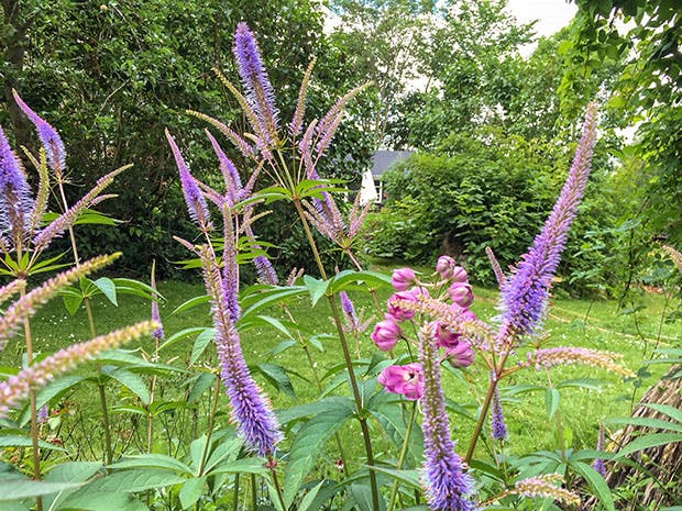 Til gengæld struttede både haveiris, Iris germanica, purpur solhat, Echinacea purpurea, askærenpris, Veronica spicata og tidselkugle, Echinops af glæde. De er alle tørketålende, og stortrives i sandjord.