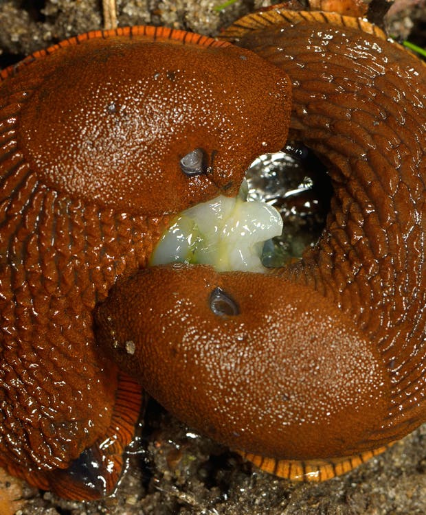 Den voksne dræbersnegl kan let forveksles med de uskyldige sorte og røde skovsnegle.