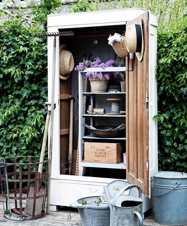 Vi har forvandlet et fint, gammelt karlekammerskab til et lille, praktisk skur med plads til det mest nødvendige. Og så pynter det samtidigt fint i haven. Se her, hvad du skal bruge og følg derefter trin for trin-guiden i galleriet nederst i artiklen.