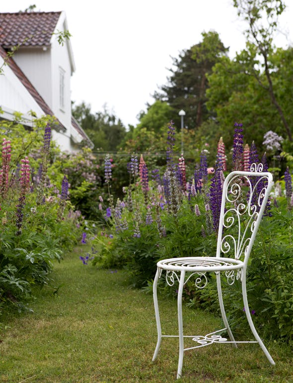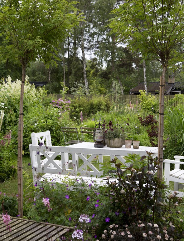 - Her kan jeg slappe af og føle mig i ét med naturen. Jeg nyder fuglenes sang og de duftende staudebede, fortæller Anne Gine, der føler, det er ren terapi at gå rundt i sin have og lade op. Hun har fået skabt præcis den have, hun altid har ønsket sig, med masser af sanseoplevelser og hyggekroge.