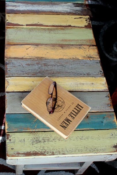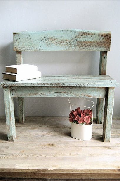 En smuk bænk, der også egner sig som et lille sofabord. Find gamle træstykker og sæt dem sammen til en bordplade eller hiv penslen frem og lav en fra bunden.