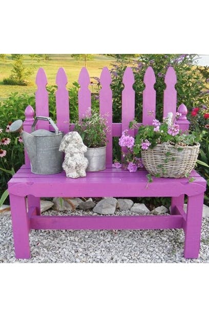 Brug idéen fra stakitten og kombinér den med din nye bænk. Dekorativ og praktisk på samme tid.
