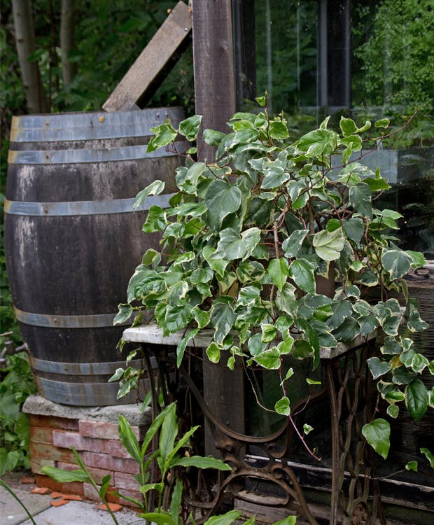 Det er kun fantasien, der sætter grænser for, hvad du kan opsamle regnvand i. Opsamlingen kan ske i hvilken som helst beholder med en fornuftig volumen. Her er det et gammelt blikbadekar, der både opbevarer regnvandet, men også tilføjer haven et skønt vandspejl.
