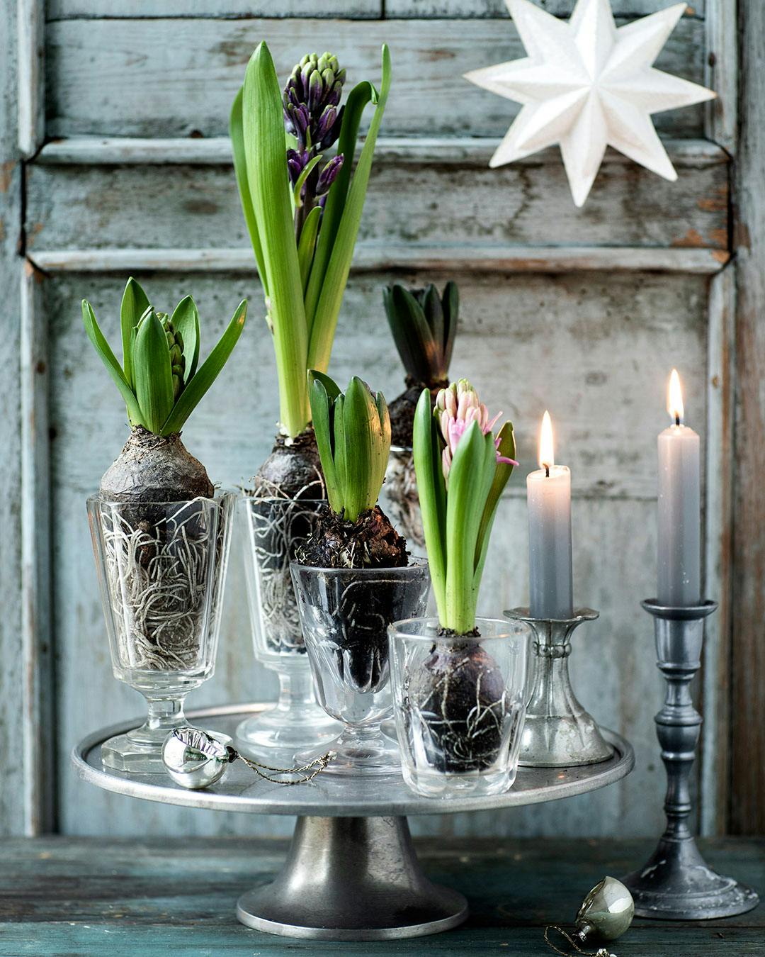 Hvis du har haft blomstrende hyacinter til at pynte over julen, så er det måske nogle præparerede løg, du selv har drevet, eller nogle som er blevet drevet til blomstring af producenten. Det betyder, at planten har blomstret langt tidligere end den ellers ville, og derfor vil den ikke blomstre igen til foråret. Løget bruger mange kræfter under drivningsprocessen, så mange vælger at kassere det udmattede løg efter afblomstring. Men der er ingen grund til at forkaste et løg, der allerede én gang har spredt glæde. Planter du det ud, vil den blomstre igen næste forår!