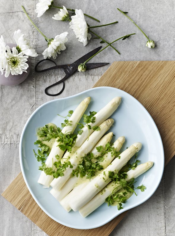 Hvide asparges er desuden kraftigere end grønne asparges og skal skrælles inden tilberedning.