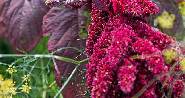 Enårig plante, der er lige så flot, som den er nyttig. Bladene kan spises som salat, og fra de modne blomsterstande kan man høste spiselige frø. Den findes i flere sorter af amarant i vinrøde eller gyldne farver. Forspir den i vindueskarmen, og plant den ud på en varm plads i læ, når al risiko for frost er overstået.