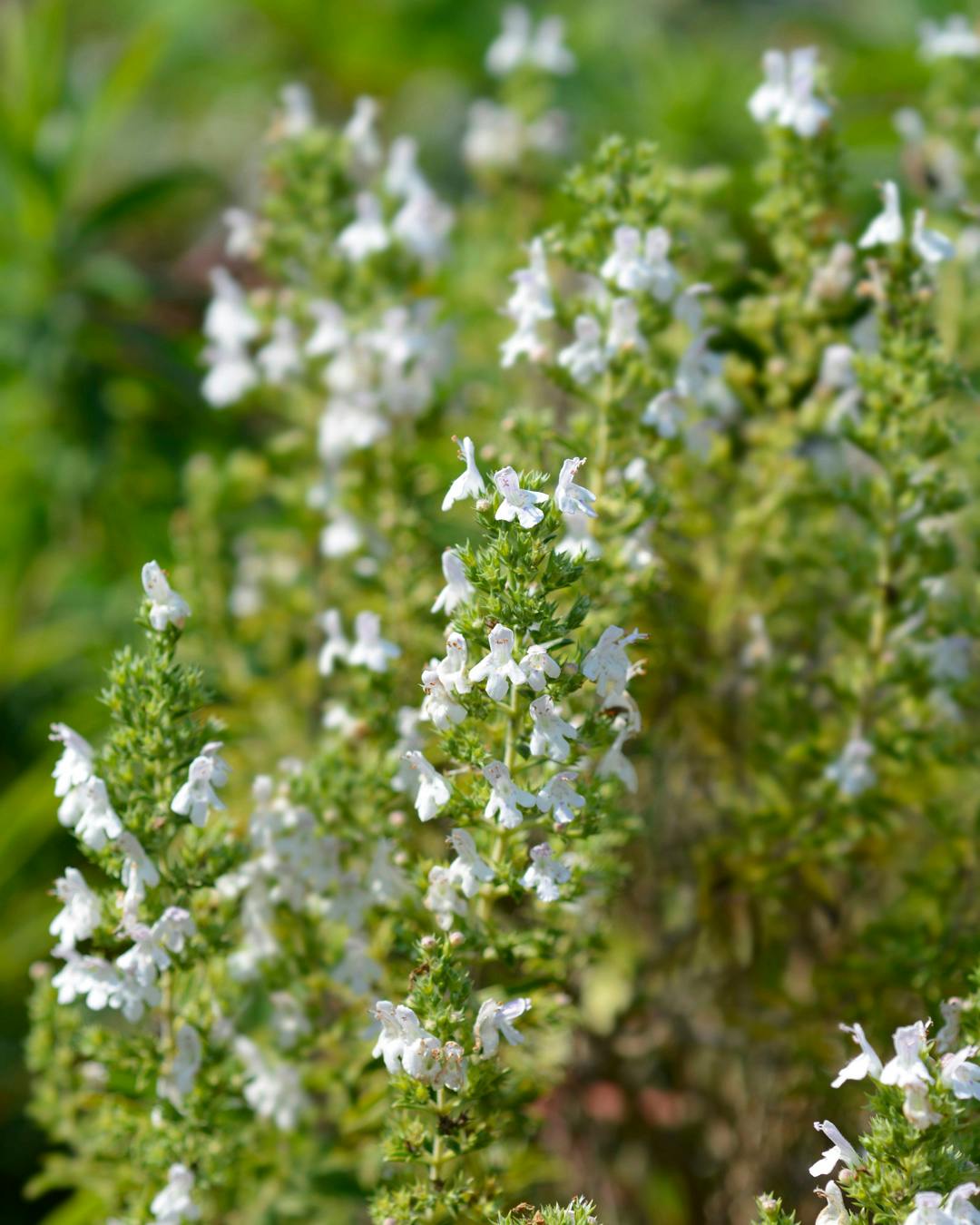 Timian, Thymus, er vinterhårdfør og beholder bladene, så man kan høste vinteren igennem. Timianslægten er enorm og findes i både krybende, oprette og med smalle eller bredere blade i grønne, gråblå og brogede farver. Blomsterne er i alle nuancer af hvid, rosa og lilla. De fleste kommer fra Middelhavslandene, men der er hårdføre sorter, som endda kan gro i Grønland. Timian bruges i utallige madretter og supper.