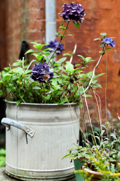 Potter med farvepift eller med ny beklædning giver et ekstra skud blomsterglæde. En zinkspand, et malet ansigt på lerkrukken, dekorative, små prikker eller en spraymalet kobberkrukke er en nem måde at gøre det på.