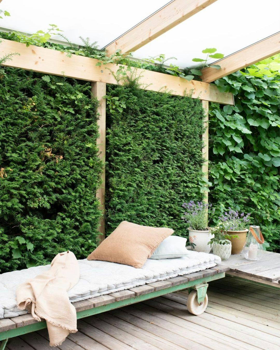 Er pladsen trang, så tænk i multifunktionelle møbler, der f.eks. kan fungere som både siddeplads og opbevaringsrum til hynder eller havegrej. Har du mod på det, så kan du endda bygge en bænk selv, og skræddersy den efter lige netop dine behov.