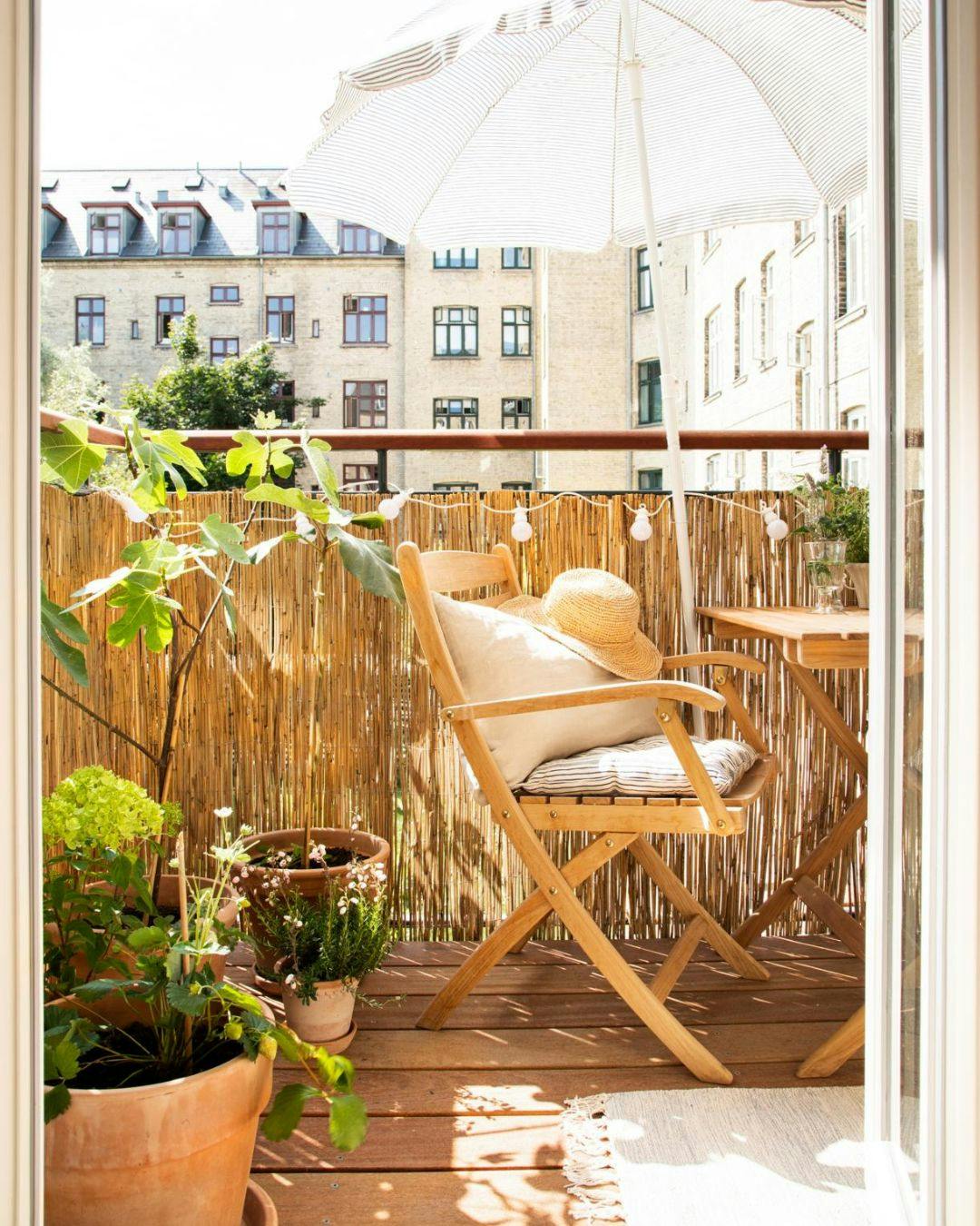 Har du altan eller et åbent plankeværk, kan et hegn af bambus eller andet naturligt flet både give læ for sol, vind og nysgerrige blikke. Det skjuler desuden kedelige metalstolper og giver automatisk en hyggelig, eksotisk stemning.