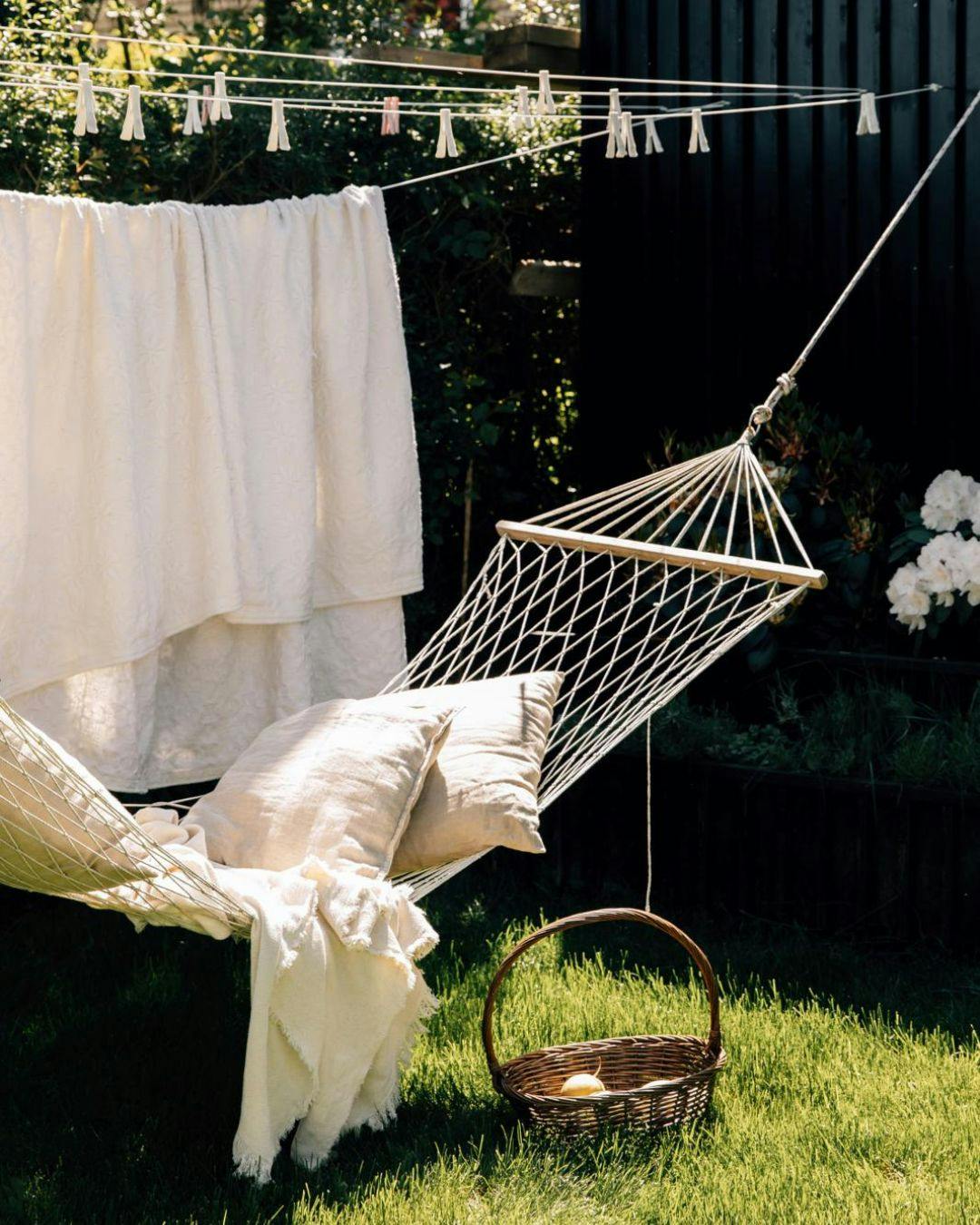 Hvem gad ikke godt tage en lille lur i forårssolen? Med en hængekøje kan du indrette et lille hvilespot, der nemt kan pakkes væk, hvis du får brug for pladsen, eller hvis en byge skulle blæse forbi. Husk solcremen!