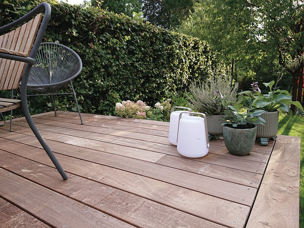 Du kan vælge mellem mange forskellige materialer til dit næste terrasseprojekt. Selvom flere af disse er billige og kræver en lav grad af vedligeholdelse, så er og bliver træ det mest miljøbevidste valg på både kort og lang sigt. Hvis du går efter det, som hedder hårdttræ eller modificeret træ, så handler du både klimabevidst og sikrer din terrasses kvalitet og holdbarhed gennem mange år. Gå gerne efter de populære hårdttræssorter som f.eks. Ipé, Cumaru og Jatoba og de modificerede træsorter som f.eks. Thermo Fyr og Thermo Ask, der modsat trykimprægneret træ ikke er tilsat en giftig kobberholdig væske. Sorterne Ipé, Cumaru og Jatoba har en naturlig lang holdbarhed, mens Thermo Fyr og Thermo Ask er gjort modstandsdygtige over for vind og vejr takket være en klimavenlig varmeprocesbehandling. Den naturlige varmeproces gør, at disse sorter har en levetid, der er dobbelt så lang som eksempelvis trykimprægneret træ.