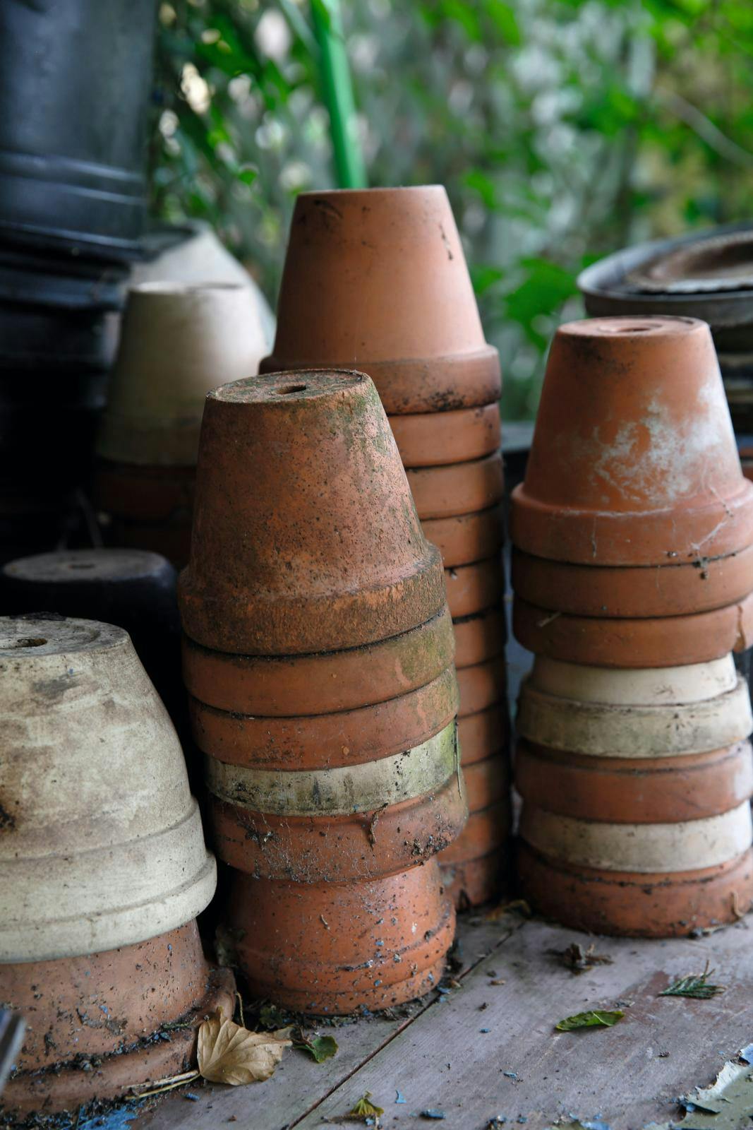 Potter og krukker af terrakotta bør tømmes for jord og opbevares et tørt sted, fx i en garage eller under et tagudhæng. På steder med hård frost og en kold vinter bør krukkerne opbevares et frostfrit sted.