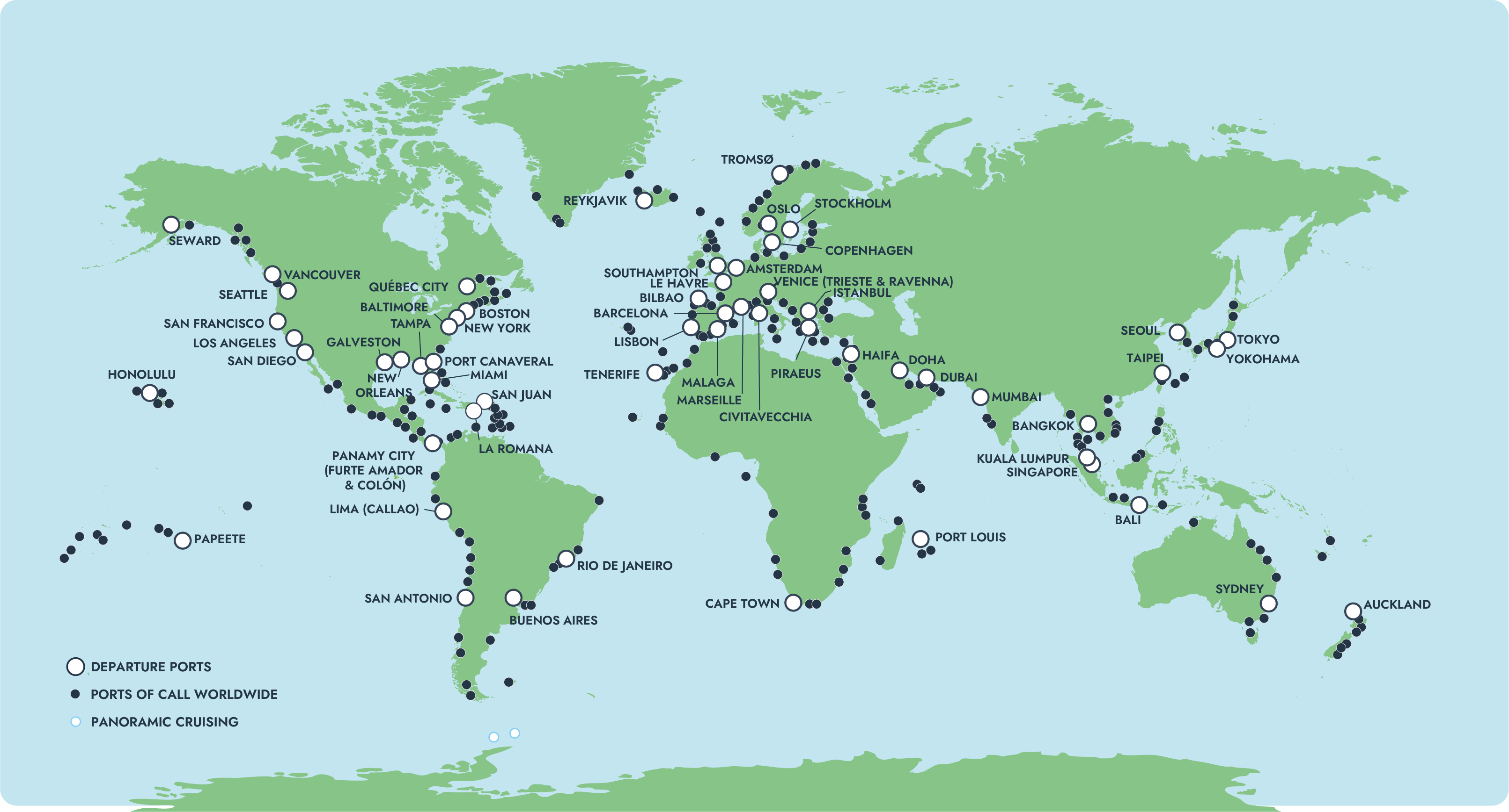 Drømmer du om at opleve nogle andre af de mange perler rundt omkring på kloden, så har NCL heldigvis langt flere krydstogter end de ovenstående at byde på. Faktisk rejser NCL over hele verden, så de går helt sikkert også forbi den destination, du drømmer om. På kortet herunder kan du se, hvortil deres mange krydstogtskibe sejler. Hvor skal din rejse gå hen?