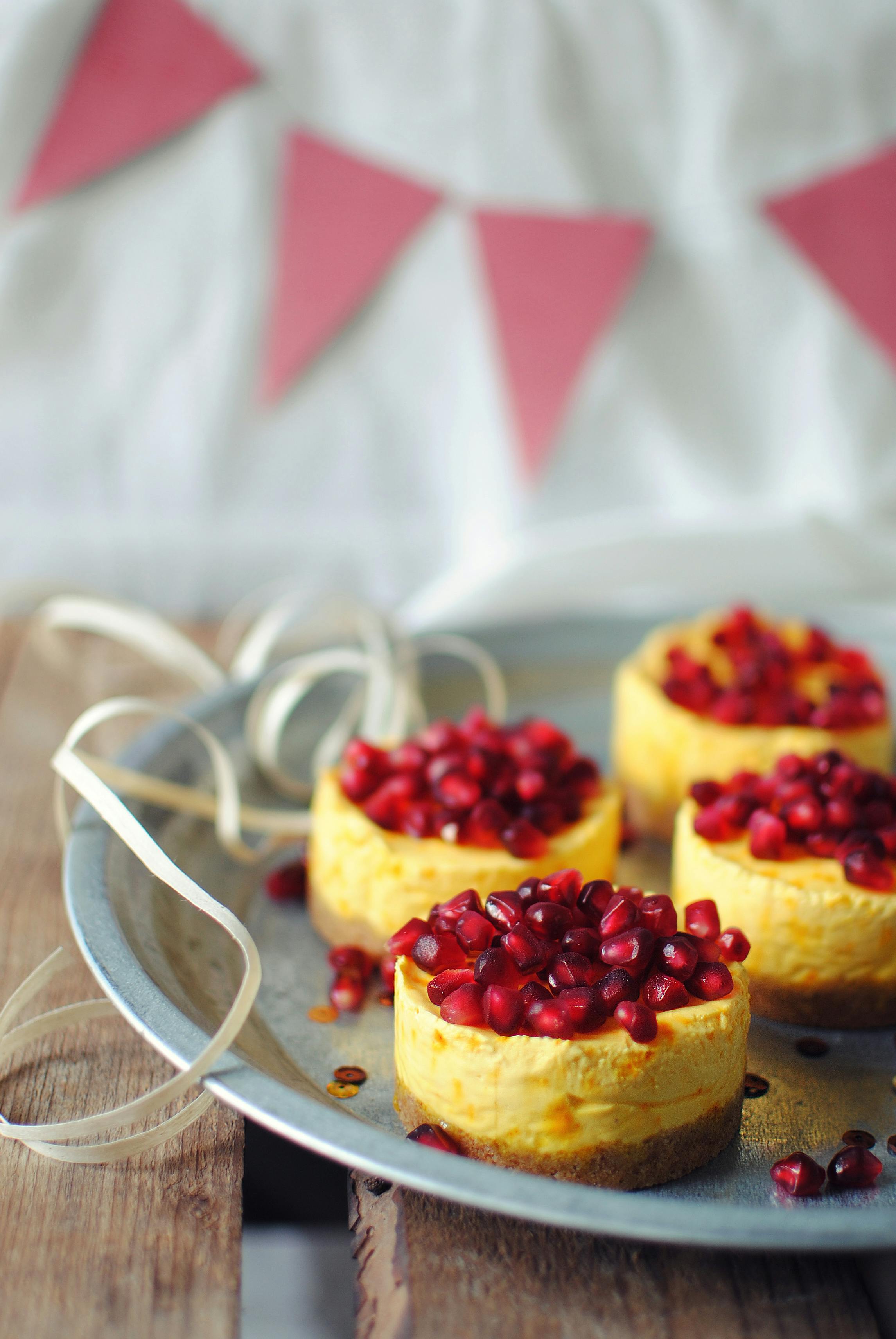 Safran er det søde køkkens karry. Det er som et magisk drys, som byder på en flot, gul farveeksplosion. Det tager ens smagsløg på en eksotisk tur til fremmede lande og byder på nye oplevelser. I de her små frozen cheesecakes kommer både farven og smagen til sin ret. Linns frozen cheesecake toppes med forskellige bær i røde nuancer, der passer til sæsonen.