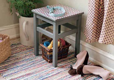 TRIN 5: Når stoffet er helt tørt, skal sædet lakeres. Lad lakken tørre, slib let med sandpapir, og laker igen.
