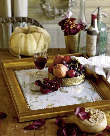 5. Læg glasset ned i rammen, og bakken er klar til brug. Vær opmærksom på, at glasset ligger løst, hvilket gør det nemt at skifte tapetbunden ud, men lidt usikkert, hvis man kommer til at sætte bakken op ad en væg. Vil du sætte glasset fast, så læg det i rammen, og bank forsigtigt bittesmå søm ind i rammens sider. De små søm vil dermed holde glasset på plads.