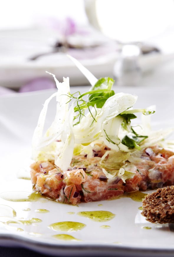 Laks er altid et sikkert smagshit, og her har vi ladet den fede fisk komme helt til sin ret i en forårsfrisk tatar med sprød fennikelsalat. Servér tataren som forret eller en let og hurtig luksusfrokost helt uden ben i!