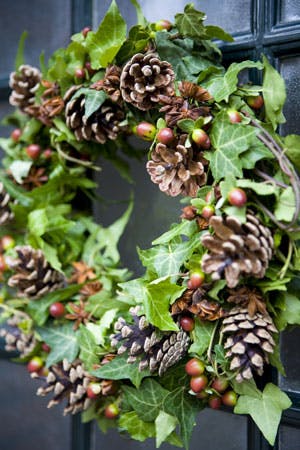 Brug naturens smukke pynt til at lave en dekorativ krans til at hænge på døren eller som dekoration indenfor.