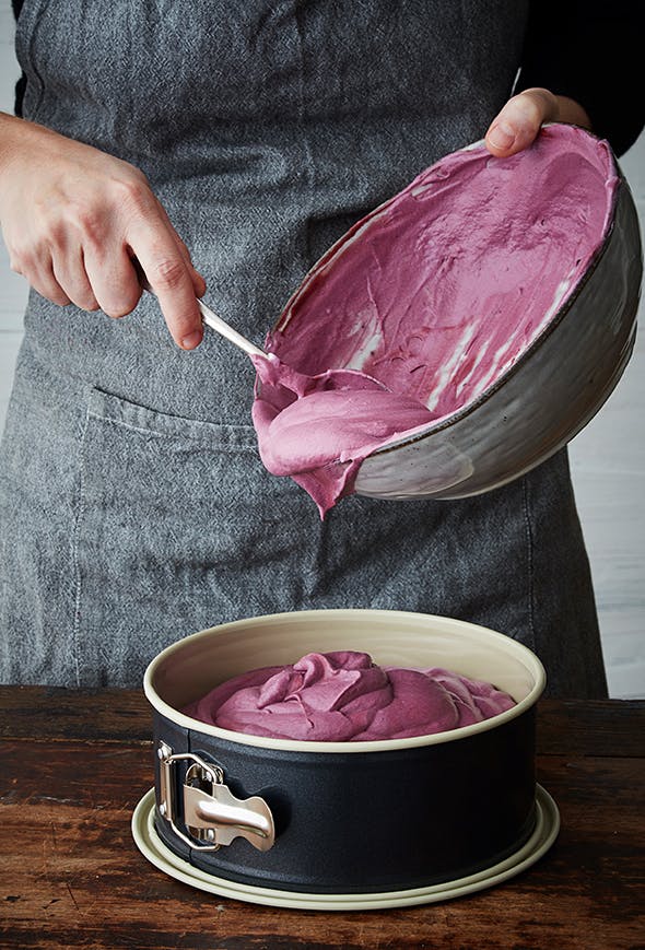 Denne blåbærmoussekage er en sand drøm at sætte tænderne i! Den sprøde kiksebund, og den bløde mousse af blåbær smager bare himmelsk. Moussens bløde tekstur gør kagen ekstra delikat - og det er også netop denne del af teknikken, der kan være en smule svær at mestre, hvis man ikke lige har prøvet kræfter med at lave mousse før.