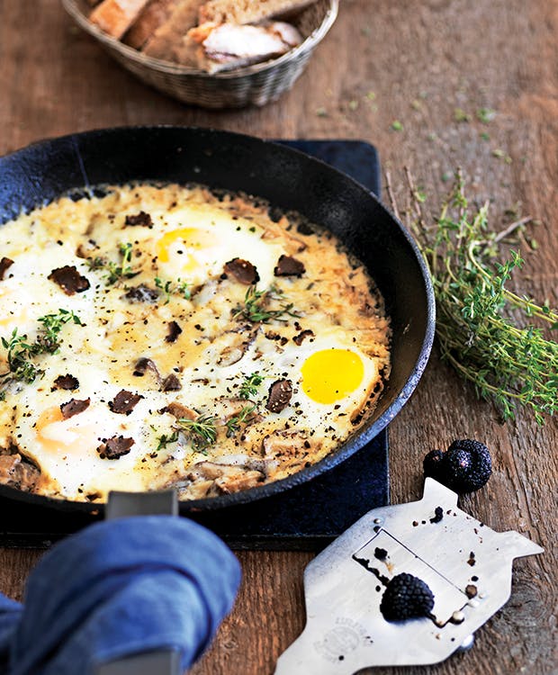 Når det kommer til lette frokostretter, er æg som regel et sikkert hit. I denne skønne opskrift har æggene fået fornemt selskab af smagslækker, sort trøffel og hvidvinsstegte svampe - en kombination der nærmest smelter på tungen. Bon appétit!