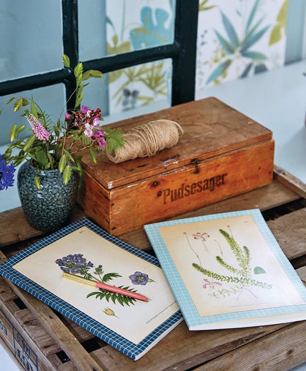 Mangler du en god og billig gaveidé til haveejeren, er det fint at dekorere en notesbog med et blomsterprint. Så kan modtageren skrive sine haveerfaringer ned og gemme dem til næste år. Du kan bruge skolehæfter eller notesbøger fra boghandleren.