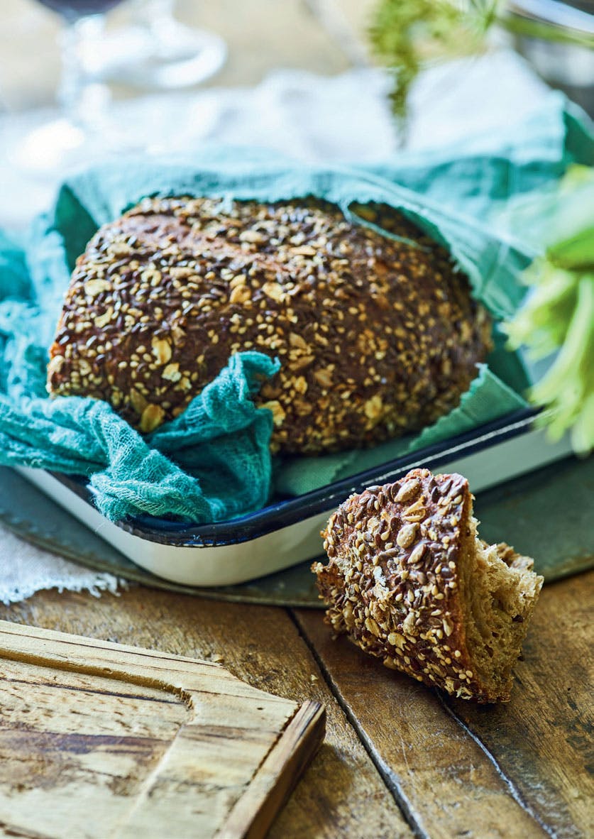 Brødet her kommer endda i en grov udgave fyldt med kerner, som gør det både sundt og mættende. Dejen skal laves om aftenen og koldhæve natten over, så brødet er perfekt at lave på en weekendmorgen med ekstra tid, når du vil forkæle familien. Og så kan resten passende bruges som sandwichbrød til frokosten eller spises som et lille mellemmåltid.