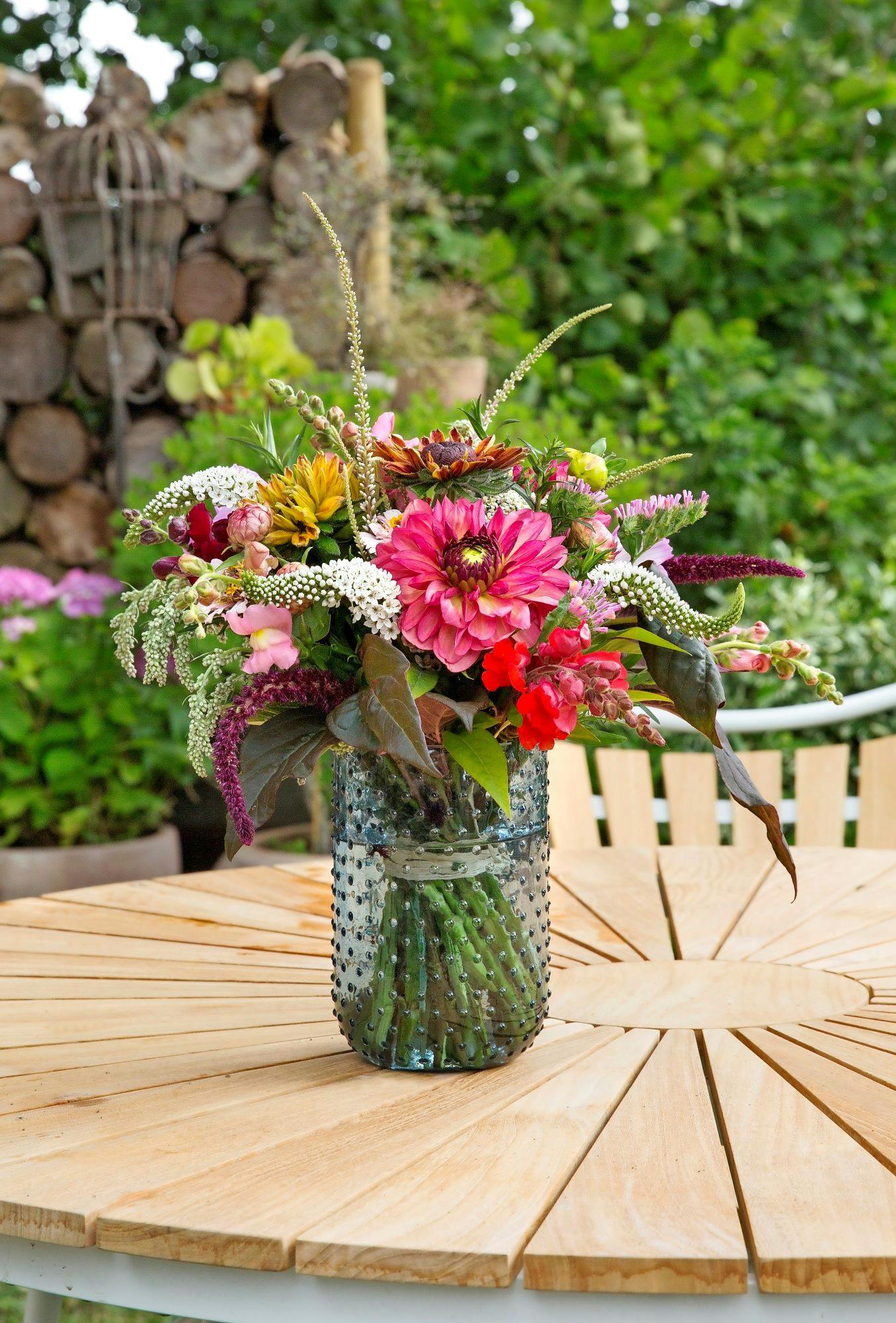 Du gør det lettest ved at dreje buketten rundt, så du kan lægge flere blomster til fra alle sider.