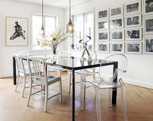 Den 145 m2 bevaringsværdige villa fra 1928 er præget af en blanding af funktionelle møbler og inspirerende kunst på væggene. Hjemmet her skal nemlig holde til at blive brugt af familiens 4 børn og en stor hund, og derfor skal der både skal være plads til Ikea -møbler og eksklusive klassikere som Barcelona-stolen i den rummelige og lyse villa.