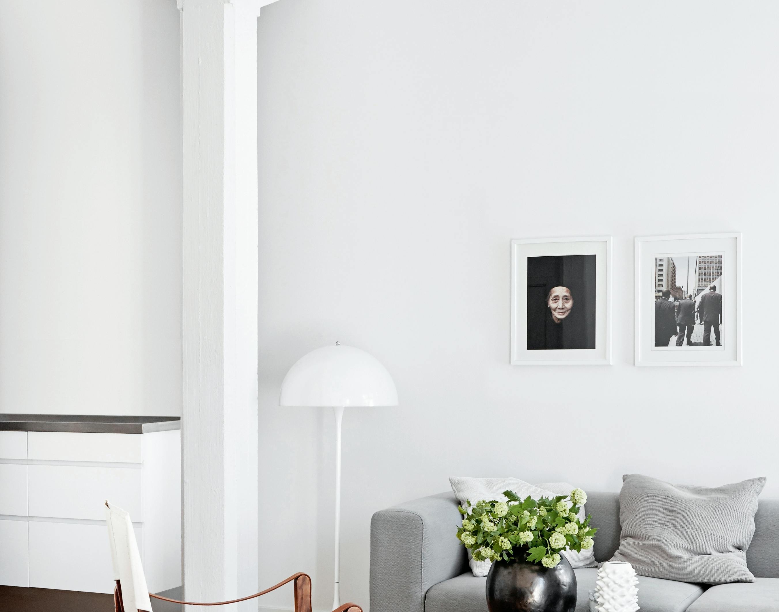 Indretningen er en god blanding af familiens historie vist i fotokunst sammensat med lækkert interiør, som emmer af stilren og nordisk indretning med et twist af det lidt mere rå. Lejligheden bærer præg af speciel fotokunst, som er at finde på alle boligens vægge og et tøjstativ har fået en omgang sort rock'n'roll-maling og står som blikfang inde i soveværelset med en rå læderjakker slynget over sig