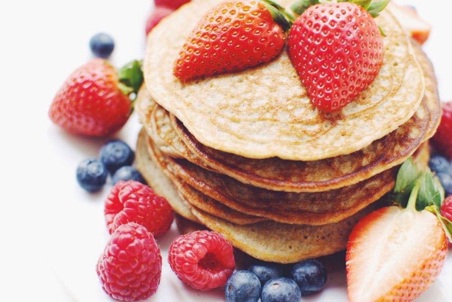 TIP: Servér pandekagerne med en masse jordbær, hindbær, blåbær og ahornsirup.