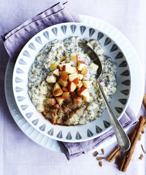 Det er helt sikkert ikke nyt for dig - eller nogen anden - at det er vigtigt at spise sund morgenmad. Men lige meget hvor mange gange, man får det at vide, så er der altså dage, hvor man ikke har tid eller tålmodighed til at kæle for morgenmaden. Hvor vækkeuret ringede for sent, eller badeværelset er besat. På den type morgener er den her opskrift på en sund morgengrød guld værd. Den tager 10 minutter at lave og kan stå og køle af, mens du er i bad. Når du kommer ud, er den klar og hele huset dufter af kanel, æble og overskud. Prøv også: Overnight oats - sund morgenmad på sekunder Prøv også: Færdiglavet økologisk morgengrød med æble og kanel!