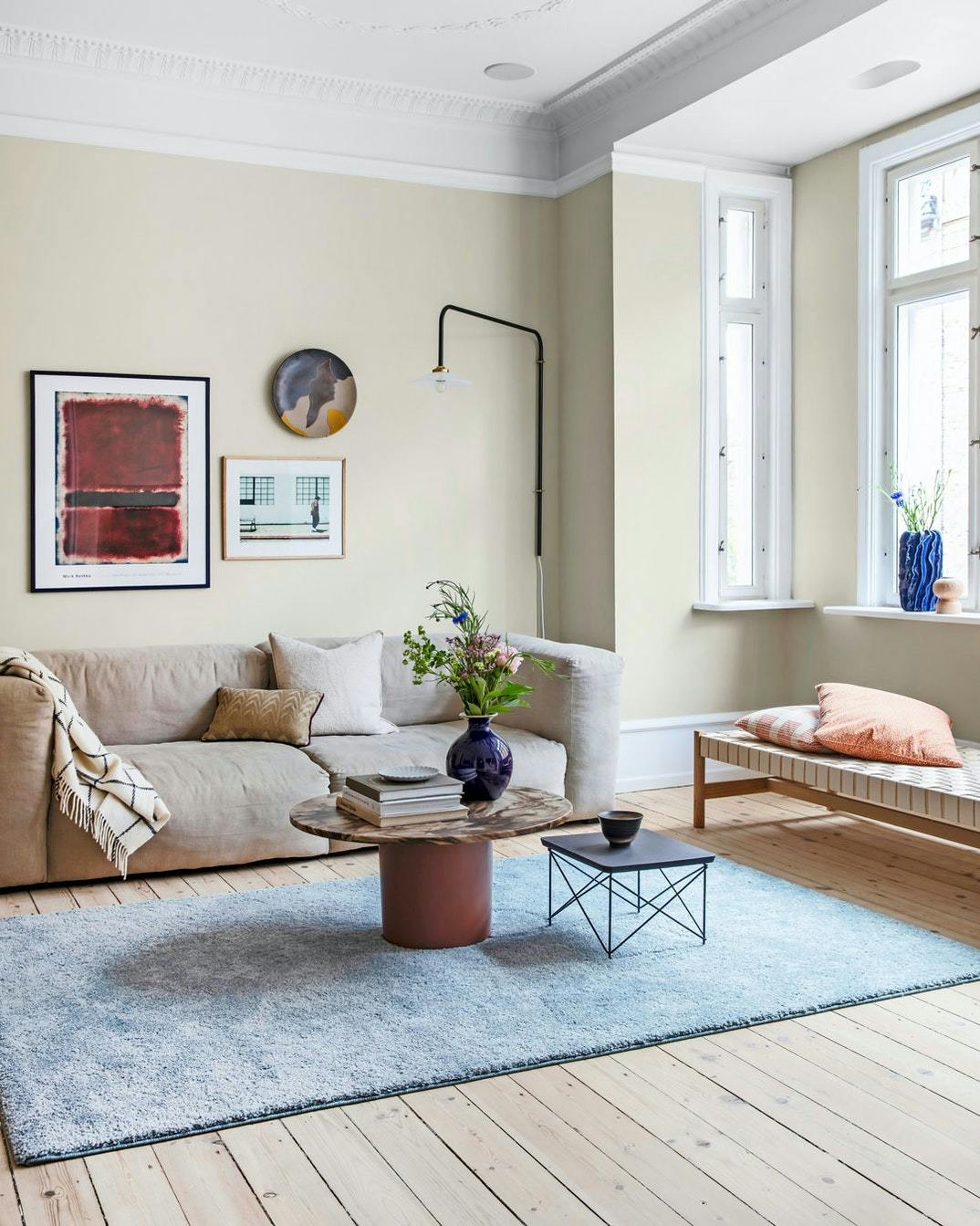 – Flere steder i vores hjem bruger vi vores vægge aktivt og giver dem både farver og motiver. Det skaber liv i et rum. Når jeg bevæger mig rundt i lejligheden, vil jeg have et energipust – og det giver farver og motiverer mig, fortæller Pernille Bang-Löwgren.